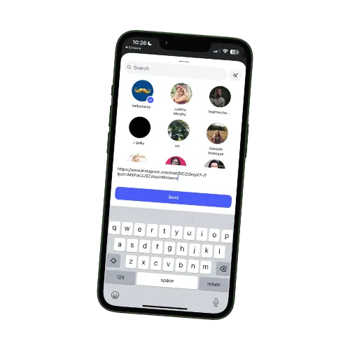 Tap on "HelloStashy" IG, paste link in message, and hit "Send"